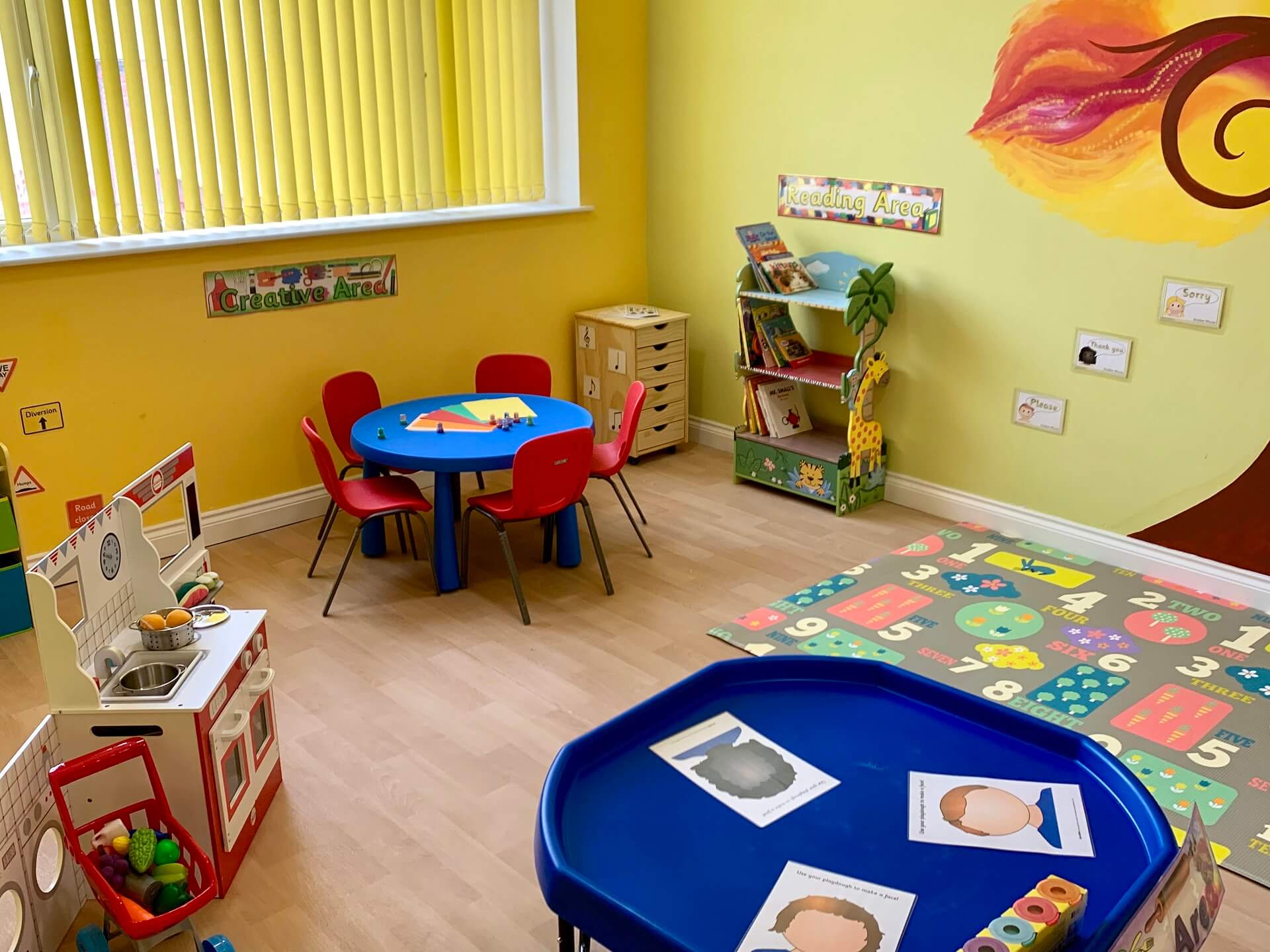 Our large, bright and colourful rooms have been designed for children aged 2 to 3 years old, allowing them to move between different areas, encouraging them to become more independent. The experienced and qualified nursery nurses encourage, show and support the children as they become independent and develop new skills. We follow the OFSTED guidelines with a 1:4 ratio for 2 to 3 years.The children also have access to our nursery garden. All the equipment and materials are at the children’s level and they are encouraged and supported by the nursery nurses to play, discover and explore during free flow play activities. During the daily routine all the children will be given opportunities to play and discover their interests with elements of challenging play which are child and adult-led activities, they are able to do this with the various activities set out and equipment to use. The children are encouraged to be polite and good mannered during play, meal times and outings.